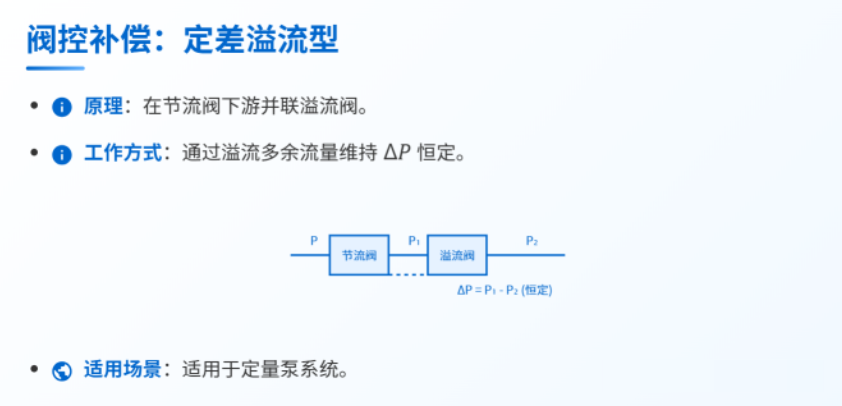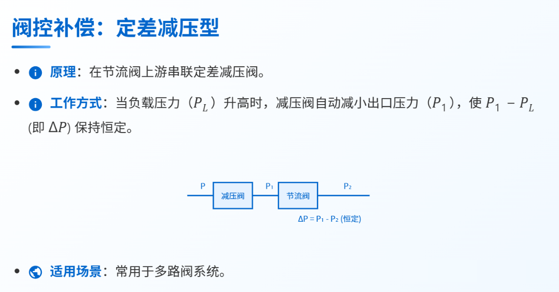 補(bǔ)償壓差而非壓力本身,當(dāng)閥口開(kāi)度固定時(shí),流量?jī)H與壓差的平方根成正比