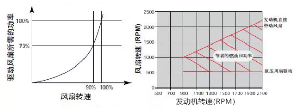 液壓風扇驅動可以為發動機在任意轉速下提供最大的風扇轉速,降低了功率消耗。