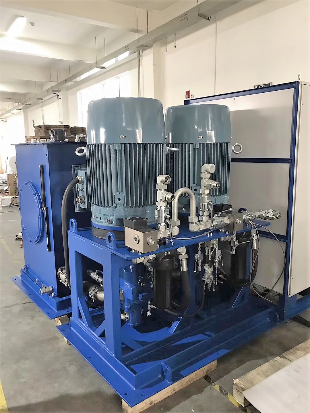 液壓站是由液壓泵、驅(qū)動用電動機、油箱、方向閥、節(jié)流閥、溢流閥等構(gòu)成的液壓源裝置或包括控制閥在內(nèi)的液壓裝置。按驅(qū)動裝置要求的流向、壓力和流量供油,適用于驅(qū)動裝置與液壓站分離的各種機械上,將液壓站與驅(qū)動中泰可以為您提供多種液壓解決方案與系統(tǒng):裝置(油缸或馬達)用油管相連,液壓系統(tǒng)即可實現(xiàn)各種規(guī)定動作。
