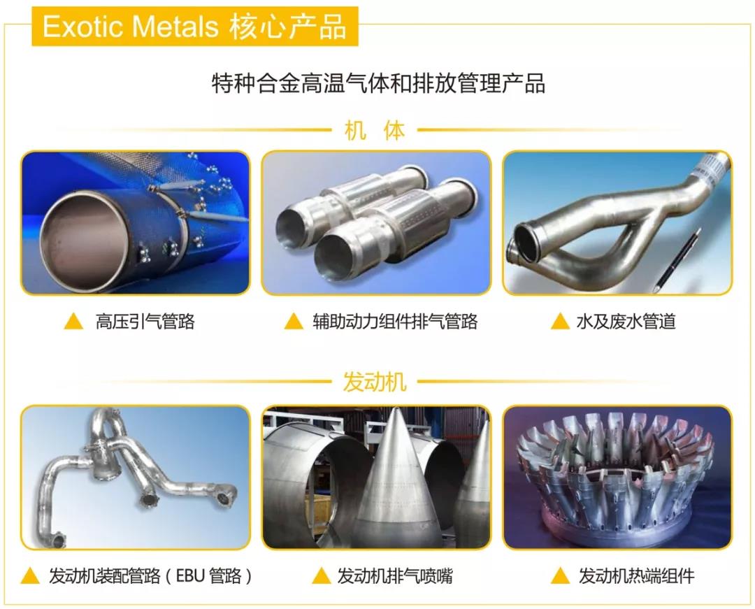 Exotic Metals是特種合金材質高溫氣體和排氣管理領域的主要供應商,其產品廣泛應用于全球主要飛機和航空發動機平臺。