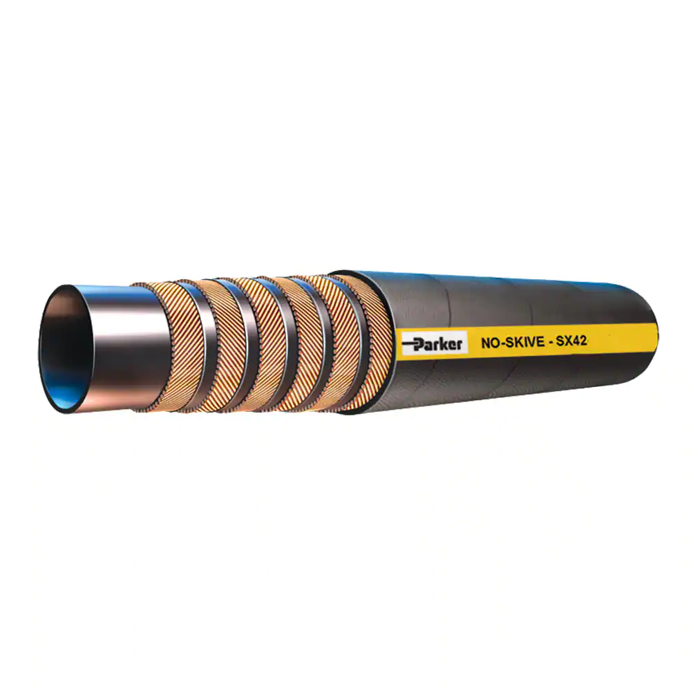 派克不剝膠螺旋液壓管 SX42 用于壓力不超過42.0 MPa通用高壓液壓的應用。軟管適用接頭是 Parkrimp 不剝膠73和77系列。
