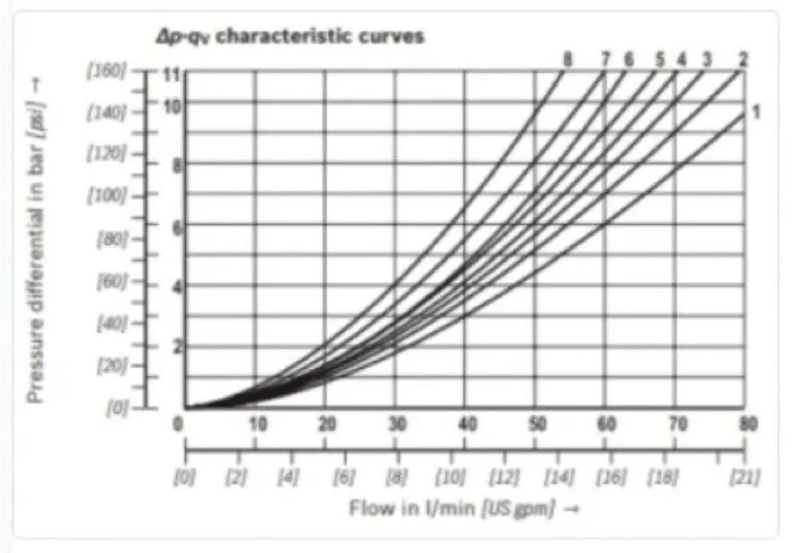 所有閥門都有不同的流動通道和流體方向變化,這將在特定流量下產生一定的壓降。這些壓降因不同的閥芯類型而異,這對于控制能源效率并確保負載有足夠的可用壓力非常重要。